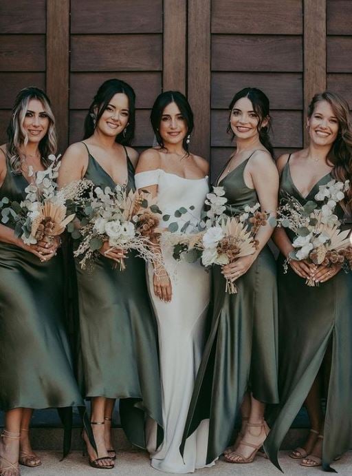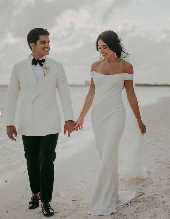 Bohemian wedding dress, simple off-the-shoulder satin wedding dress