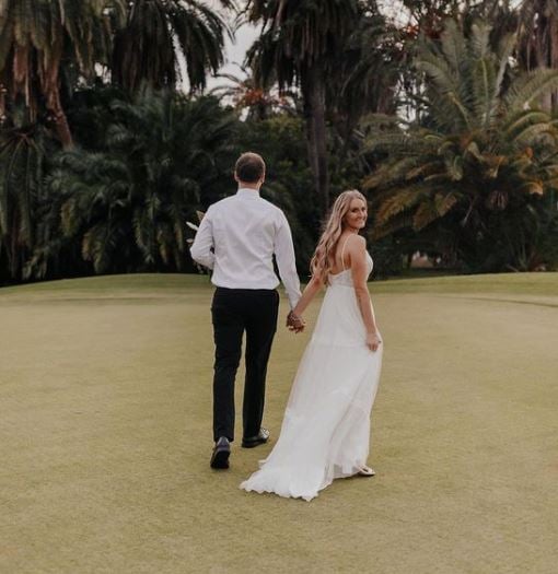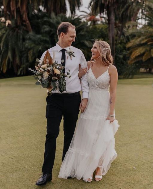 Bohemian wedding dress, simple v-neck strap lace wedding dress
