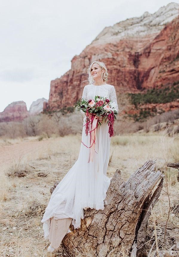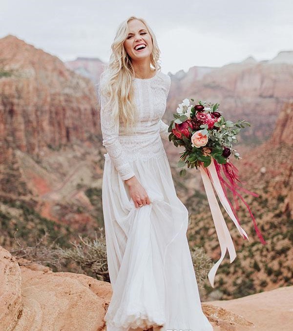 Long Sleeve Lace Chiffon Wedding Dresses Bohemian Vintage Country Bridal Gowns