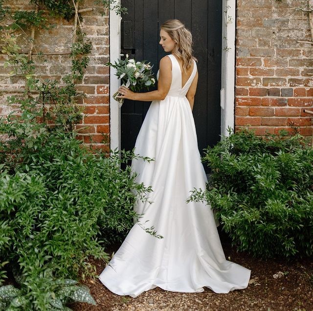 Beautiful A-Line V Neck White Satin Wedding Dresses