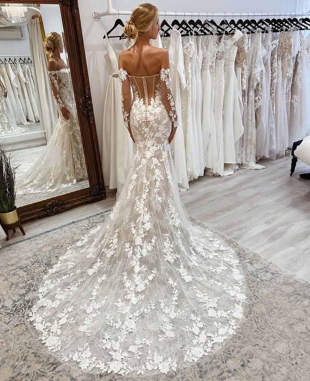 Charming Mermaid Off the Shoulder Long Sleeve Lace Wedding Dresses