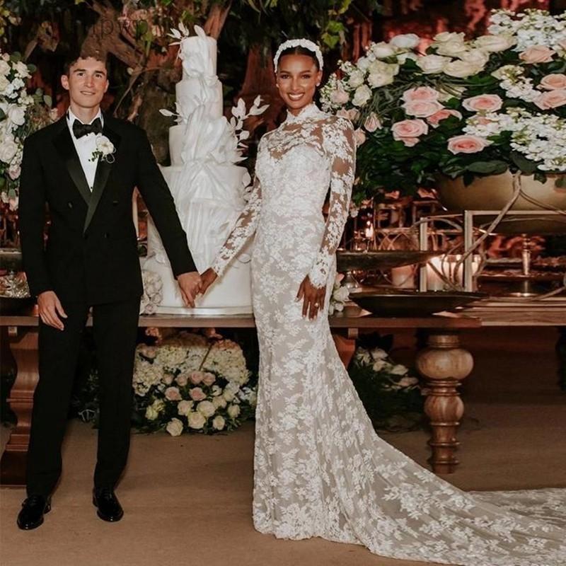 Exquisite Mermaid Wedding Dresses with Detachable Train High Neck Long Sleeve Chapel Train Cathedral Bridal Gowns