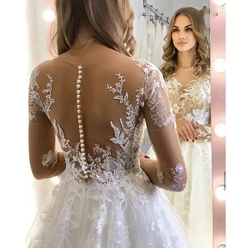 Gorgeous Wedding Dresses Bridal Ball Gown Long Sleeves Lace Applique Sweep Train Custom Made Party Gowns