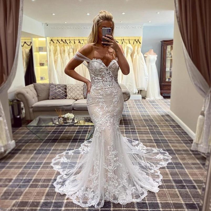 Off the Shouler Lace Mermaid Wedding Dresses Appliques Sweetheart Sweep Train Plus Size Tulle Bridal Gowns