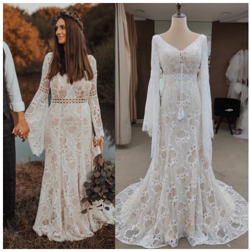 Lace Up String Backless Bohemian Mermaid Bridal Gowns