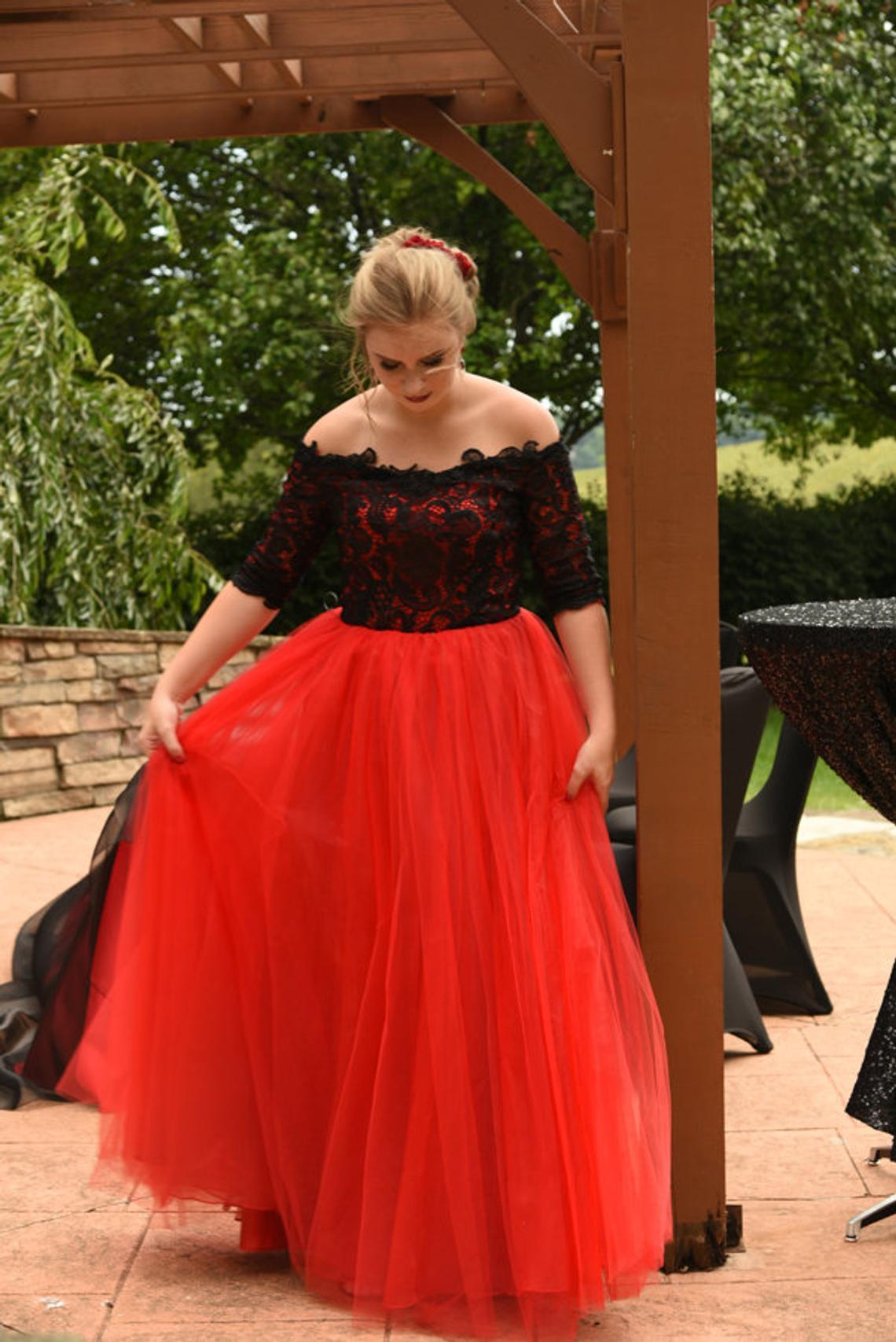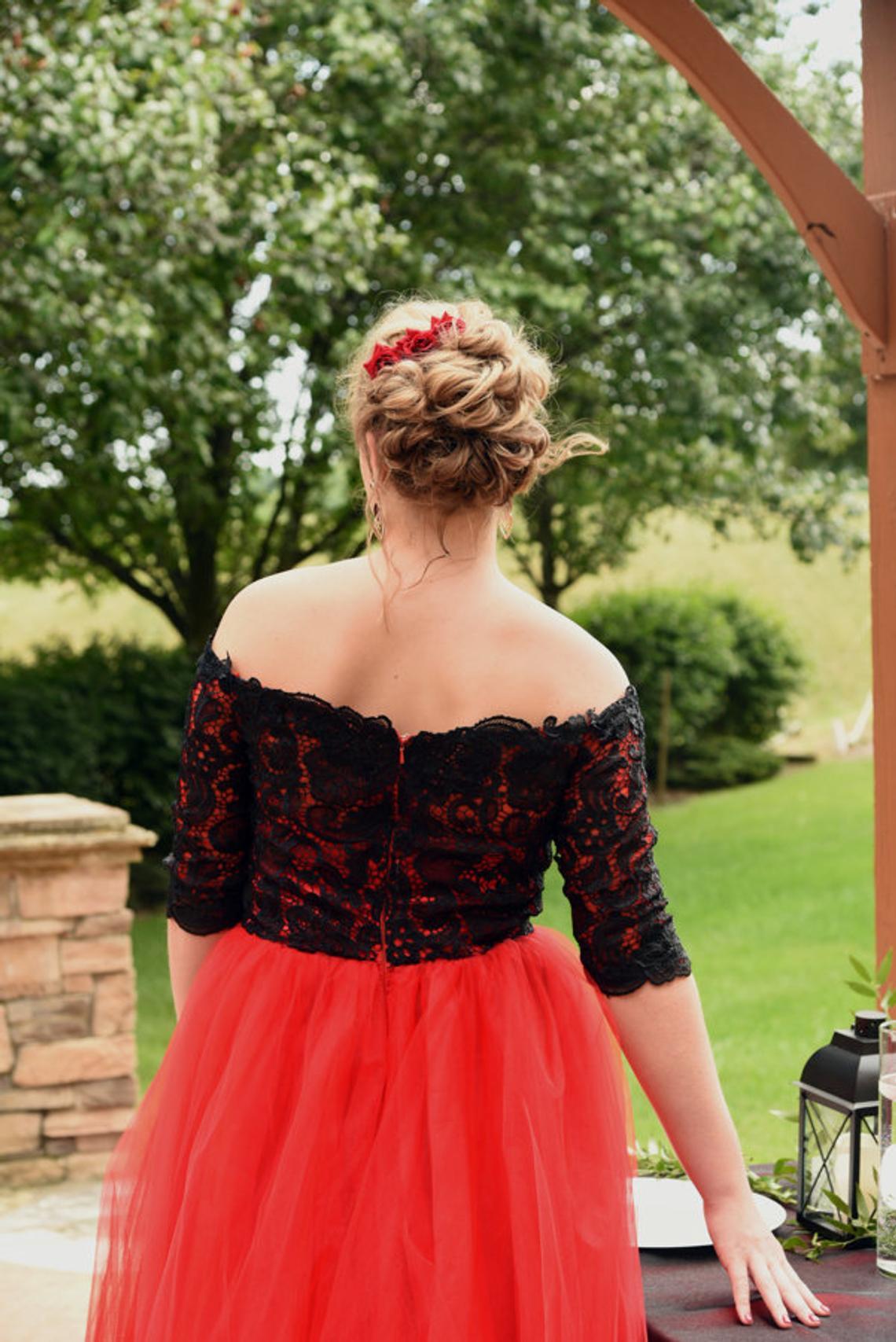 Red Black Gothic Wedding Dresses Gowns With Half Sleeves Off the Shoulder Lace Tulle Floor Length Non White Goth Bride Dress