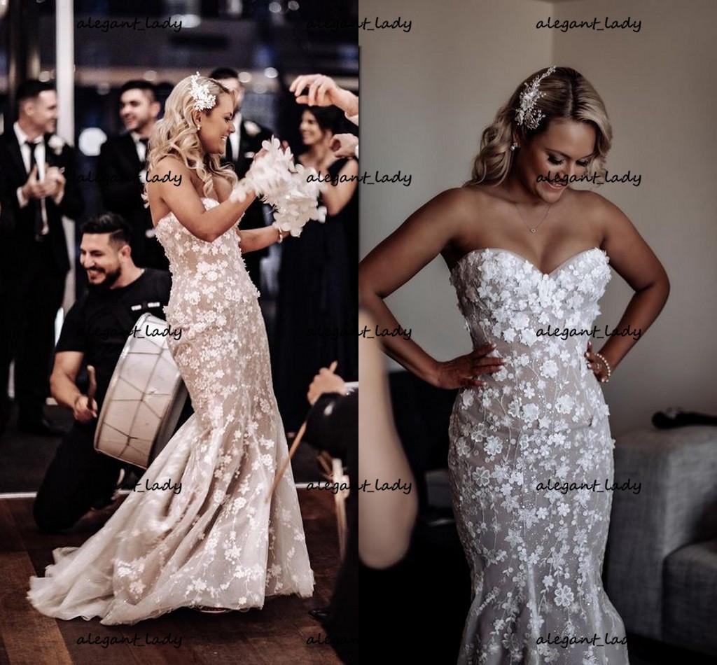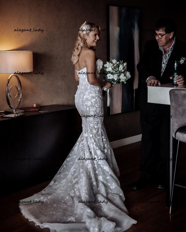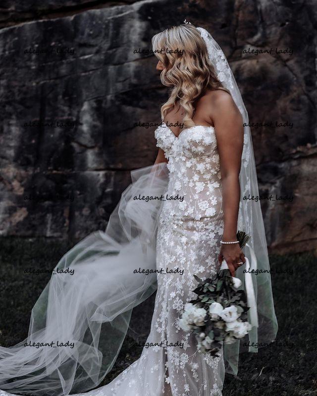 Lovely Mermaid Beach Wedding Dresses Sweetheart Corset Lace-up 3D Floral Lace Country Bohemian Trumpet Wedding Gown