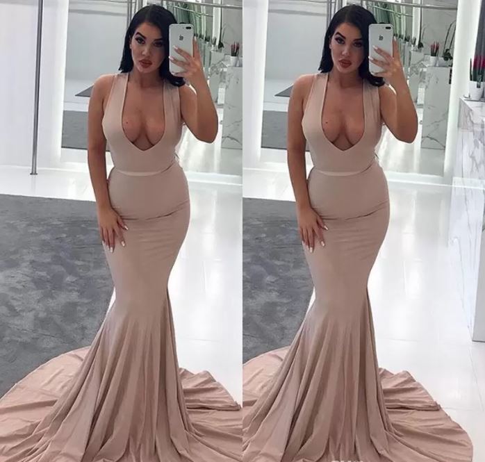 Sexy Plunging V-Neck Prom Dresses Attractive Sleeveless Sash Sweep Train Party Gowns Glamorous Dubai Celebrity Cocktail Dress Evening Gowns