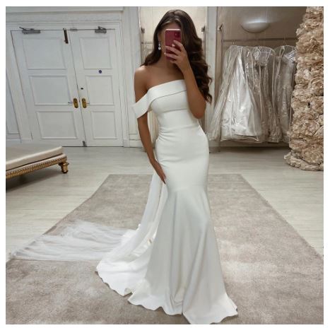 Satin Wedding Dresses for Women Simple Off-The-Shoulder Wedding Gown Sexy Mermaid Backless Bride Dress