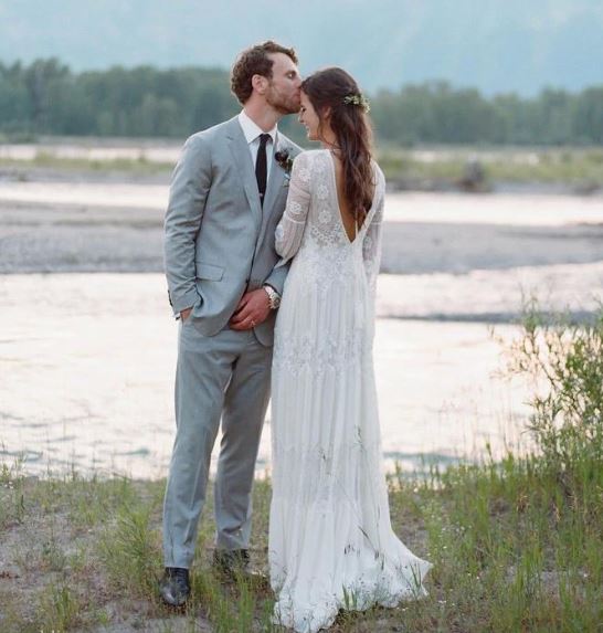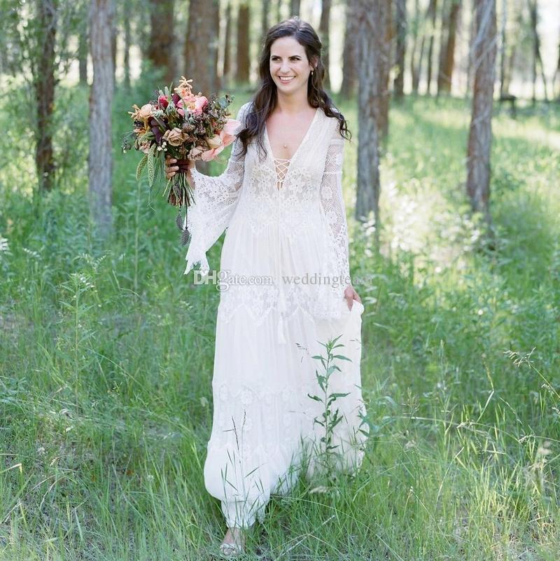 Elegant Bohemian Lace Backless Wedding Dresses Beaded Deep V Neck Beach Bridal Gowns