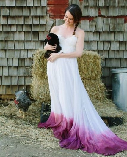 Country Dye Colorful Purple Wedding Dress, Long Wedding Dresses, Chiffon Wedding Gown Bridal Dress