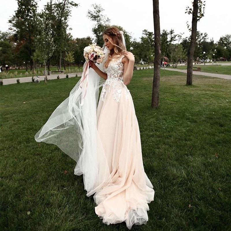 Sexy V-neck Boho Wedding Dress Sleeveless A-line Backless Appliques Gown