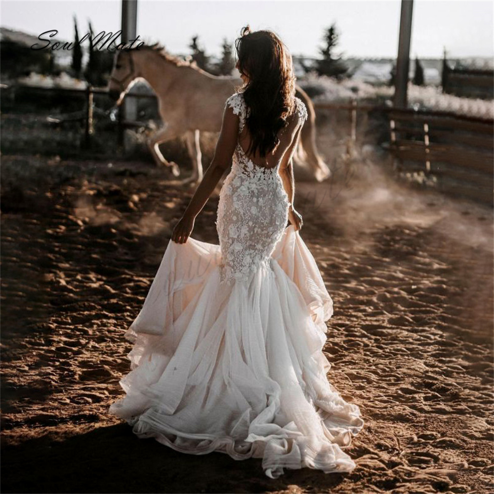 Sexy V Neck A Line Wedding Dress For Women Lace Appliques Bridal Gown Backless White Court Train Bridal Dress