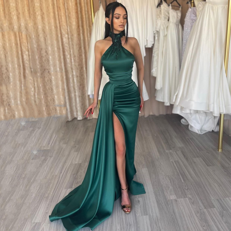 Halter Neck Parti Dress High Split Beadings Long Cocktail Gowns