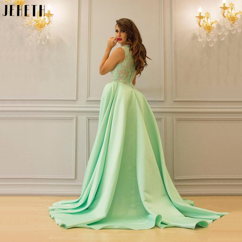New Dubai Arabic Mint Prom Dress With Slits Elegant Long Evening Satin Lace Formal Special Occasion Gowns