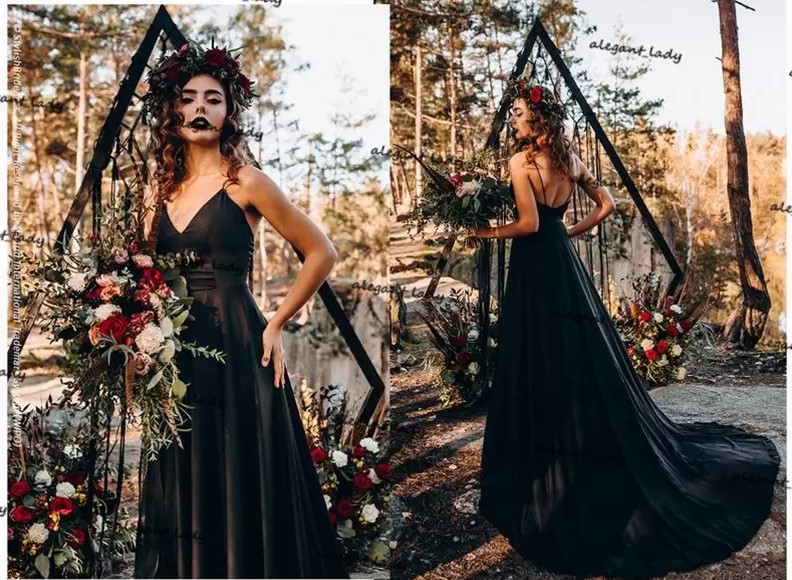 Simple Stain Backless Spaghetti Sweep Train Gothic Beach Country Bridal Gowns