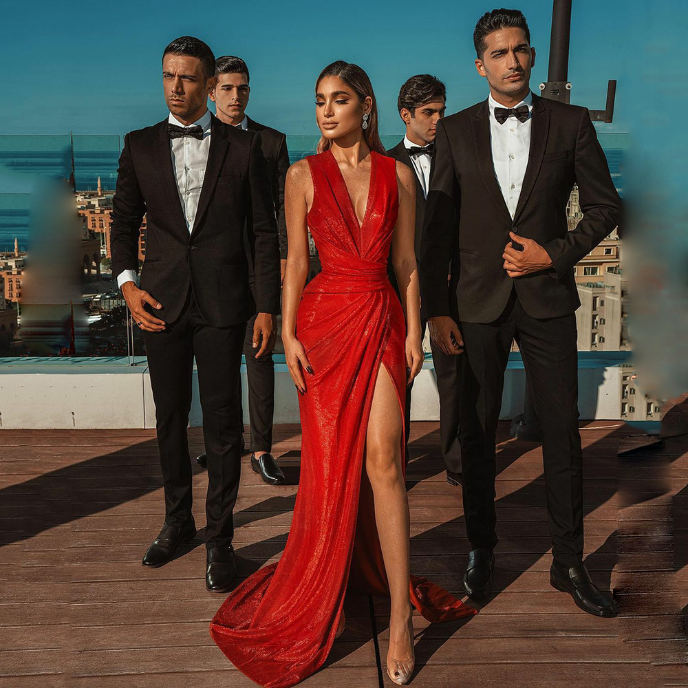 Red Mermaid Prom Dress Deep V-Neck Sleeveless Evening Dress