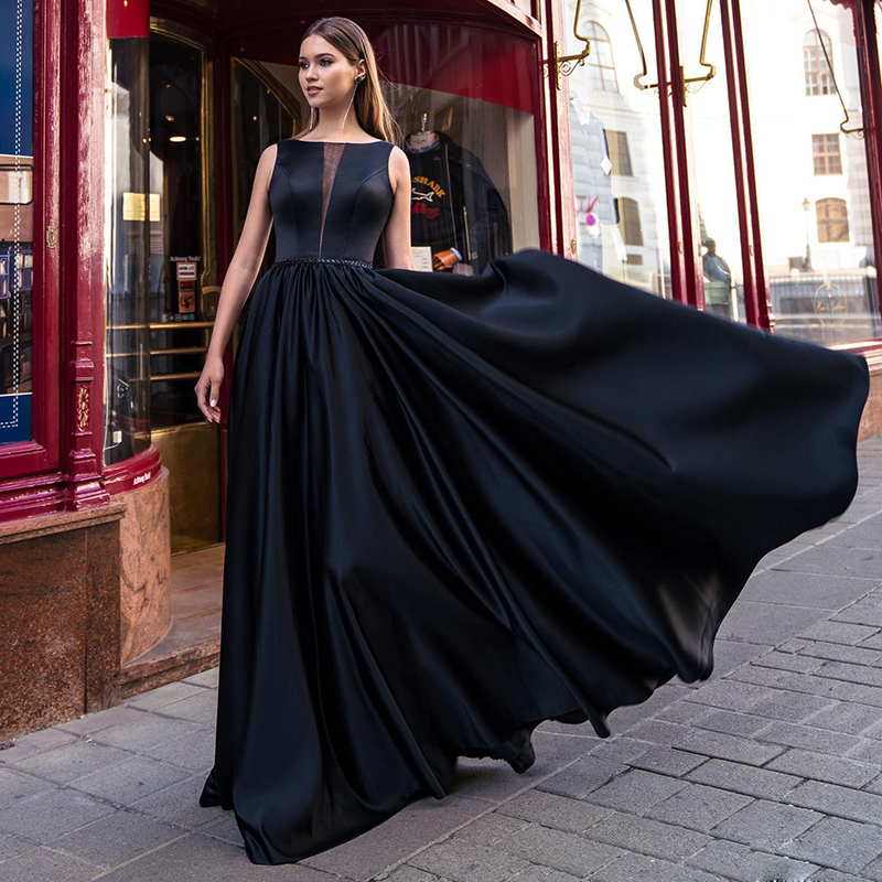 Elegant Evening Dress A-Line V-Neck Sleeveless Tank Straps Pleated Satin Prom Gown