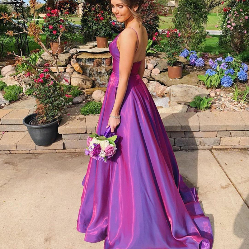 Sexy Satin V-Neck Prom Dress Floor-Length A-Line Evening Dress