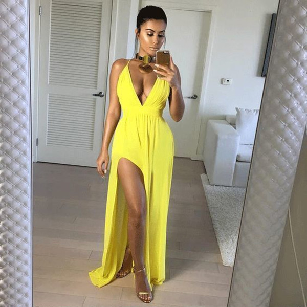 Spaghetti Straps Long Prom Dresses, V-neck Sexy Prom Dresses
