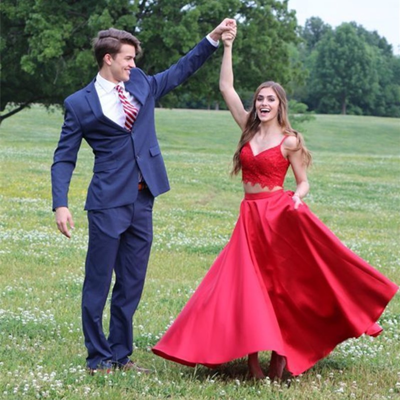 Two Pieces Lace Long Prom Dresses, A-line Newest Prom Dresses