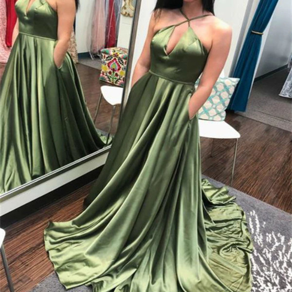 V-neck A-line Long Prom Dresses, Popular Prom Dresses