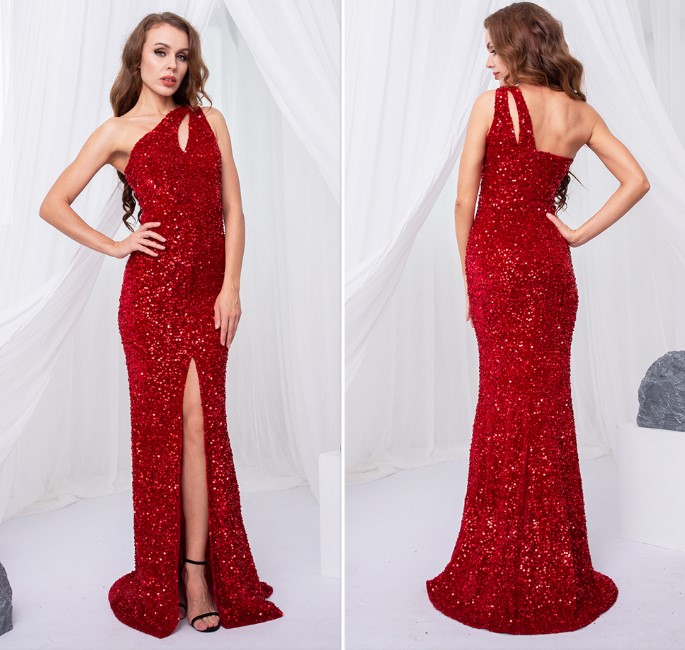 Stretchy Gary Slit Leg One Shoulder Sleeveless Wedding Party Dress