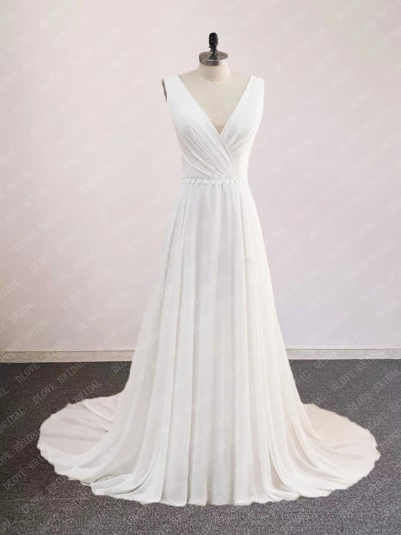 Elegant V-neck Beach Wedding Dresses Beaded Boho Chiffon Bride Dress
