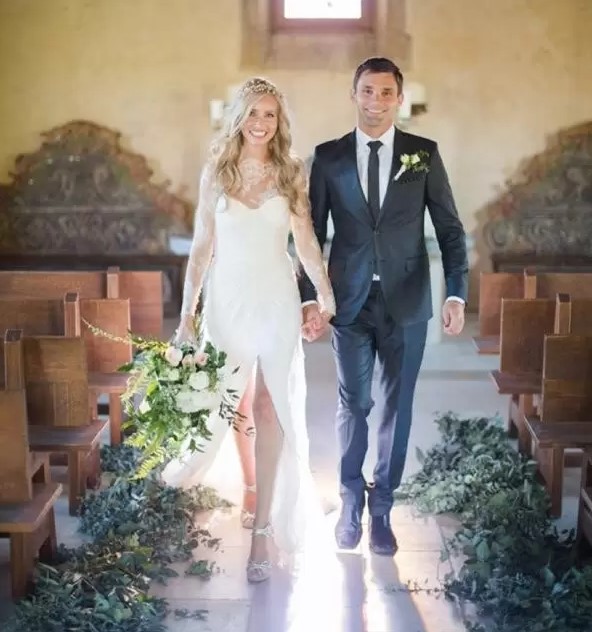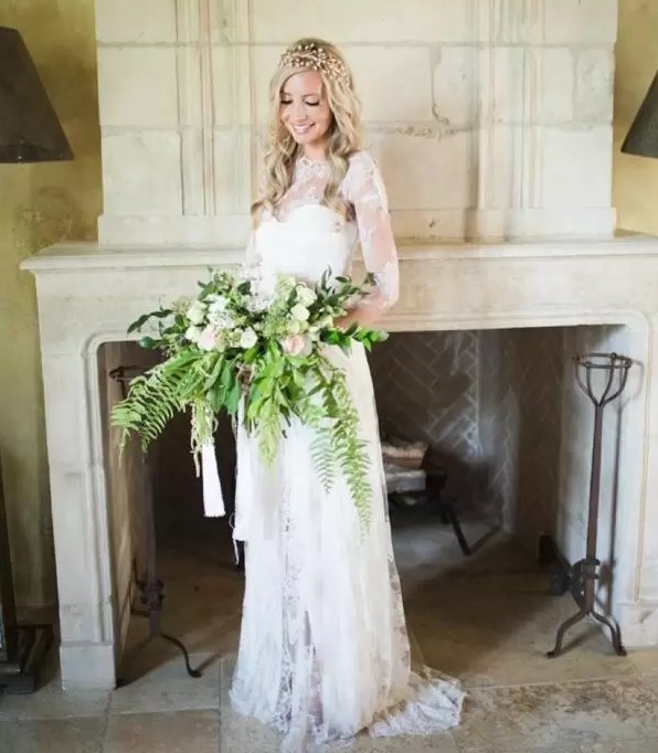 Cheap Lace Bohemian Sheath Wedding Dresses Ivory Custom Made Long Sleeves Front Slit Vintage Sheer High Neck Bridal Gowns