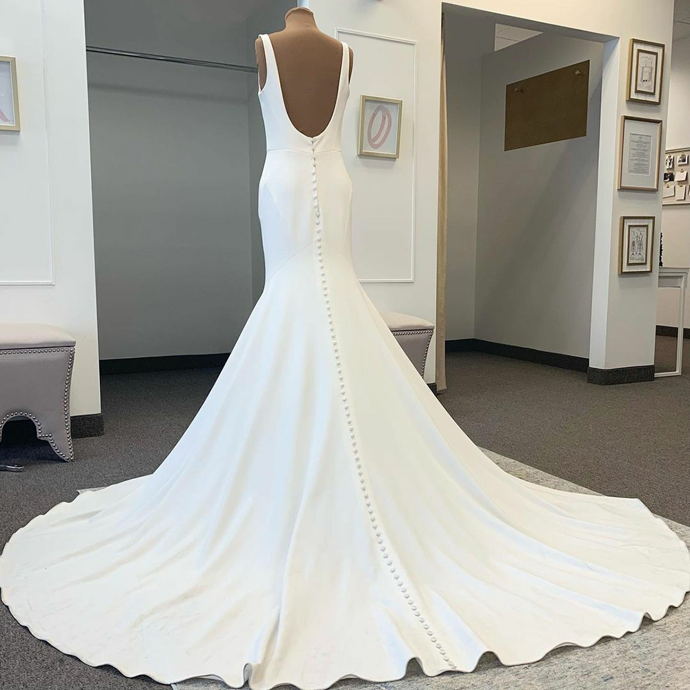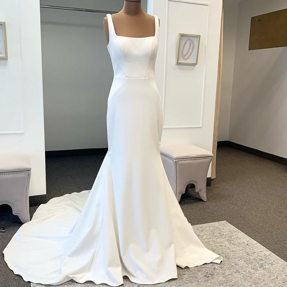 Simple Mermaid Satin Wedding Dresses Square Neck Bridal Gowns Backless With Buttons Brides Dress