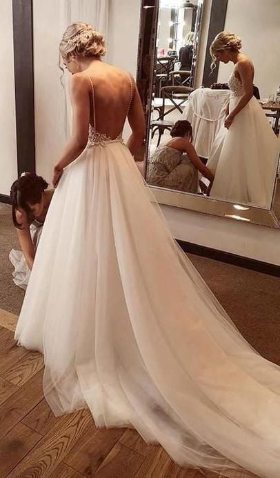 Fairy Ball Gown V Neck Lace White Wedding Dress