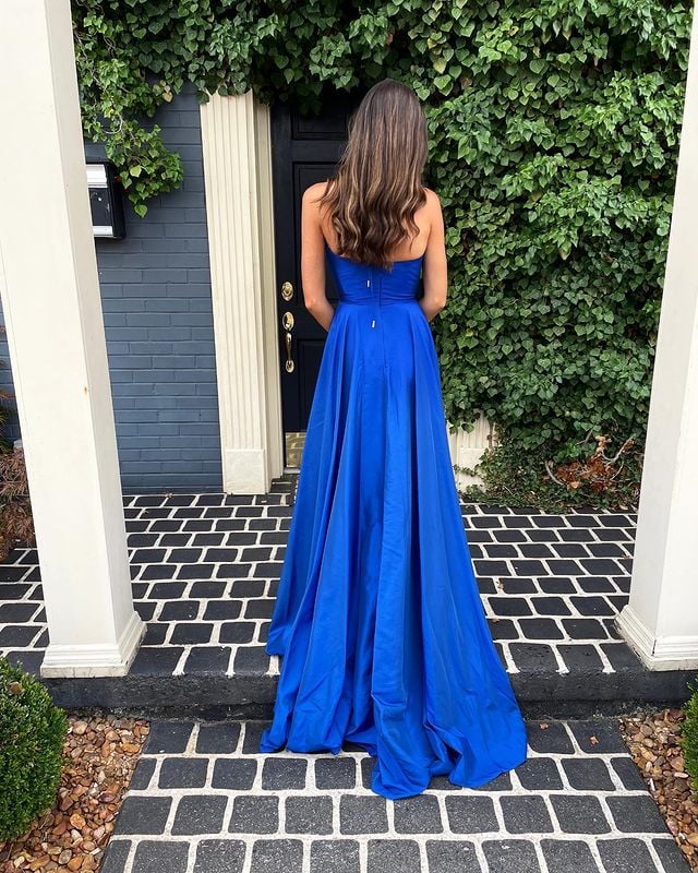 Sweet V Neck Spaghetti Straps Royal Blue Satin Prom Dress