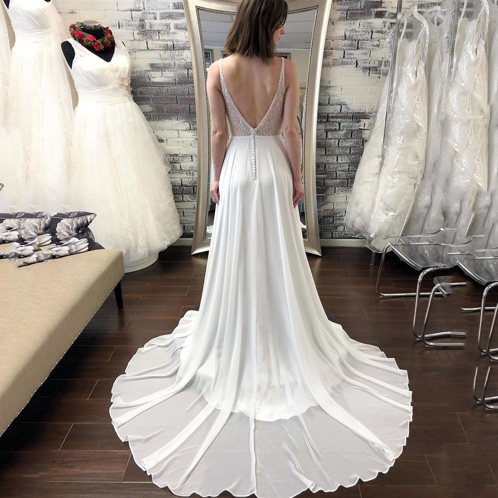 Elegant Ivory A-Line Beading Chiffon Wedding Dress V-Neck Sleeveless Bridal Gown
