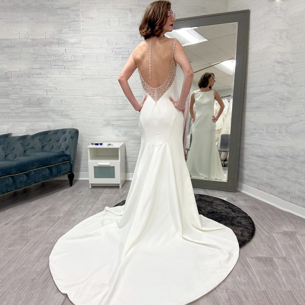 Elegant Ivory Mermaid Satin Wedding Dress Boat Neck Sleeveless Bridal Gown