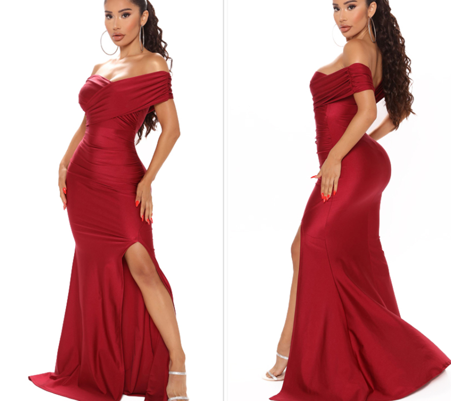 Off Shoulder Backless Bridesmaid Gown Sexy Split Leg Stretch Bodycon Mermaid Dress