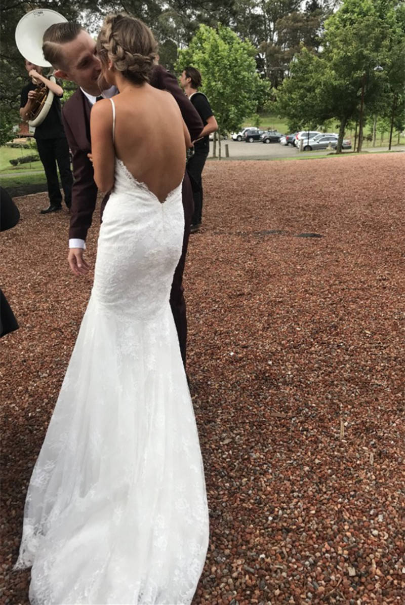 Spagetti Straps Summer Beach Wedding Dresses Backless Garden Bridal Gown