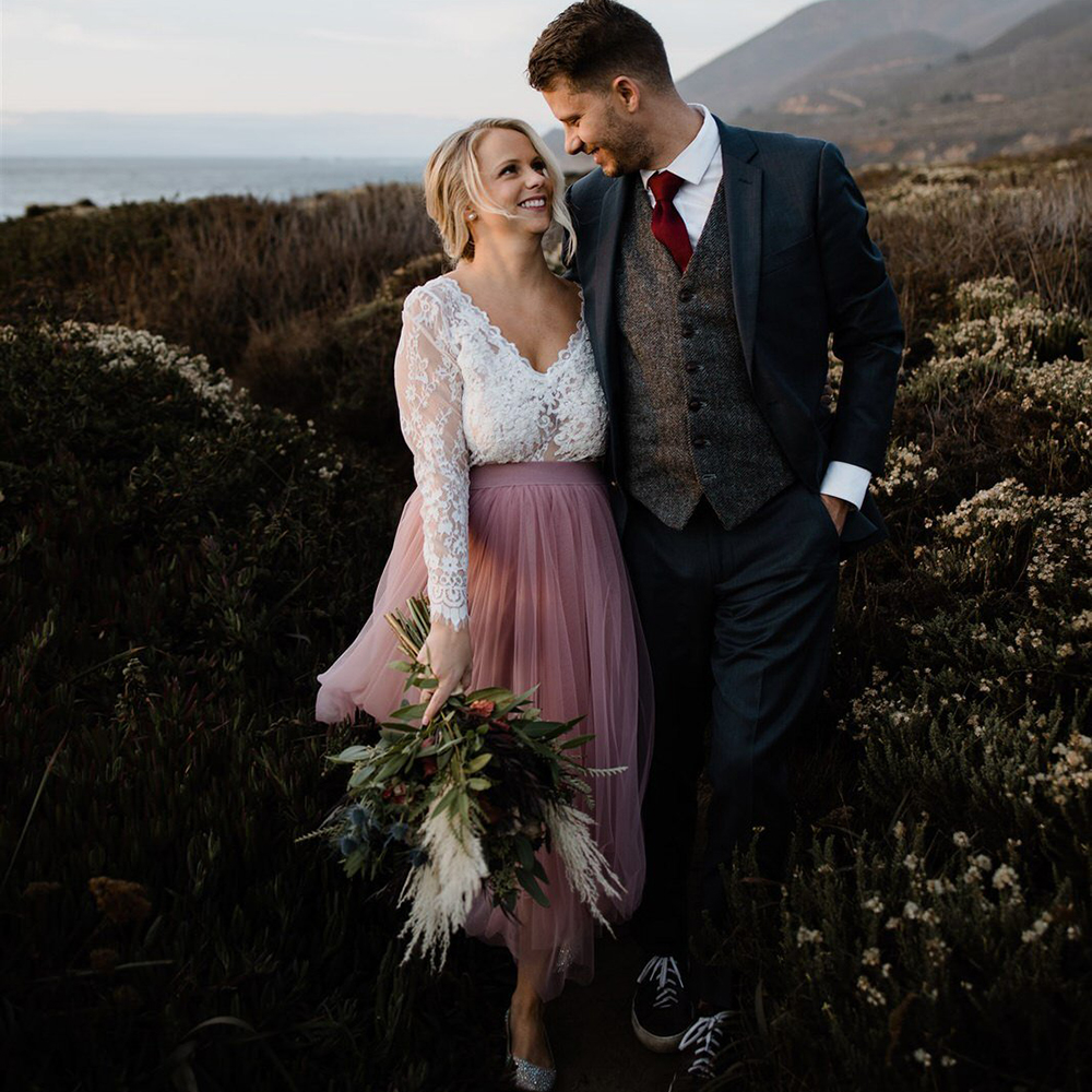 Rustic Beach Two Piece Long Sleeves Wedding Separate Dress
