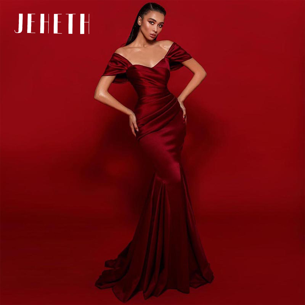 Red Off the Shoulder Satin Mermaid Evening Dresses