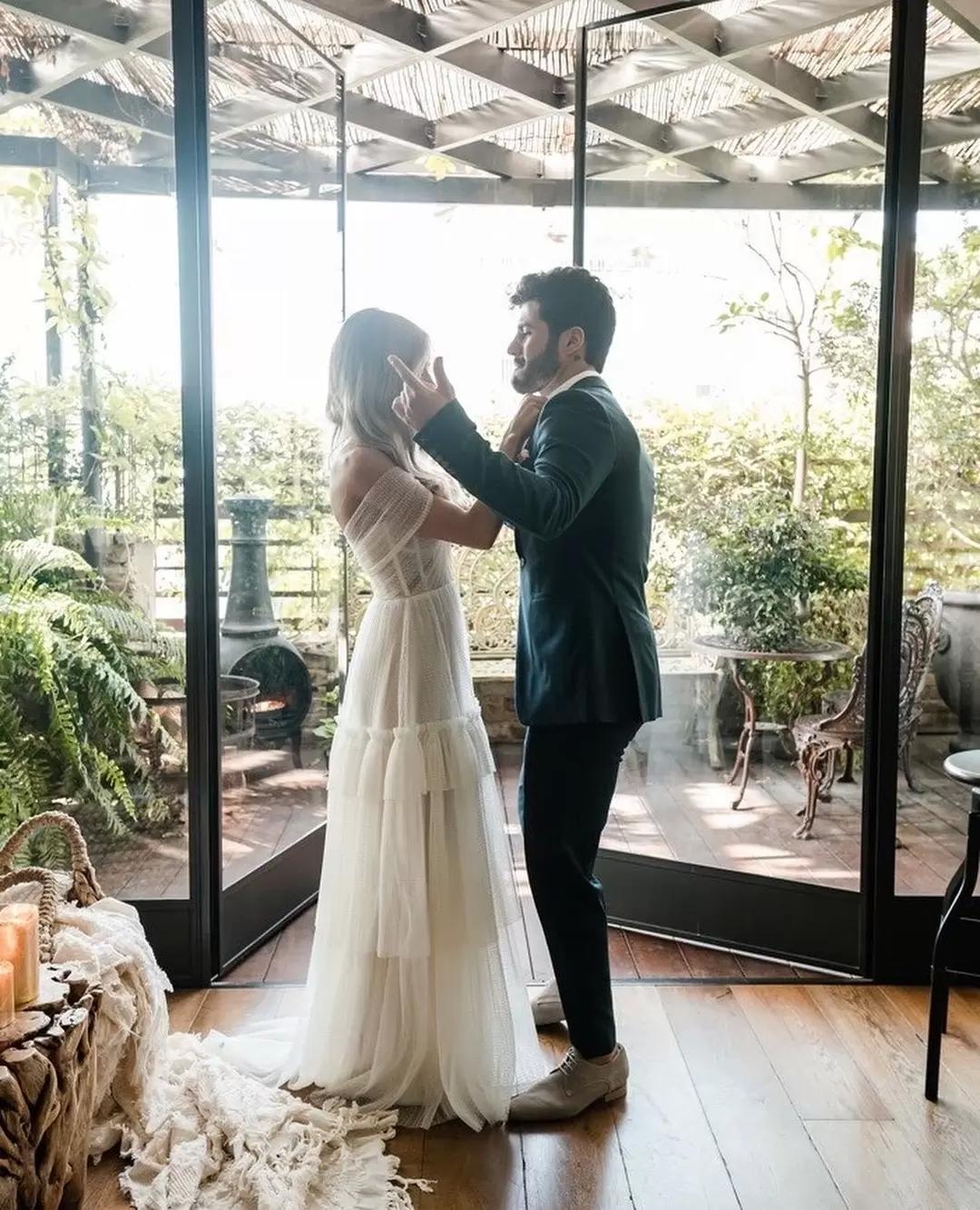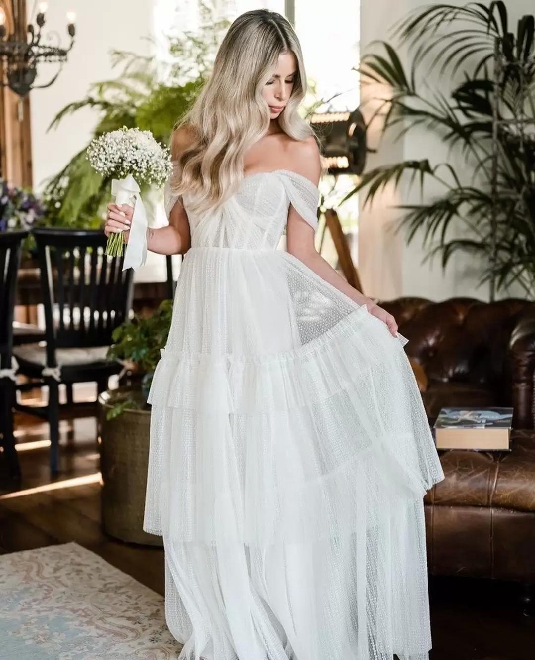 Boho Wedding Dresses A Line Off the Shoulder Floor Length Tiered Custom Made Bridal Gowns