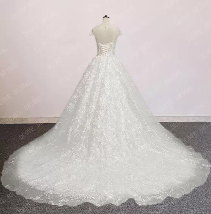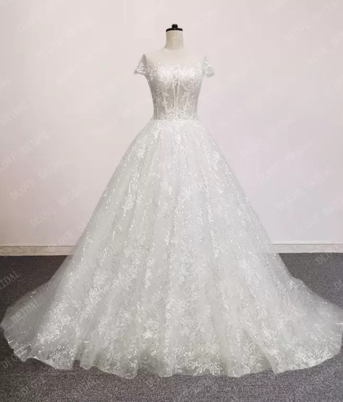 Elegant Ball Gown Wedding Dress Crystal Bling Lace Beaded Bridal Collection Set Wedding Gowns