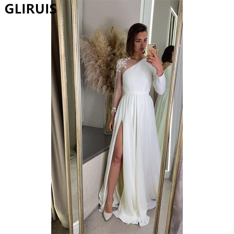 Royal A Line Wedding Dresses Tulle One Shoulder High Split Appliques Wedding Bridal Gowns