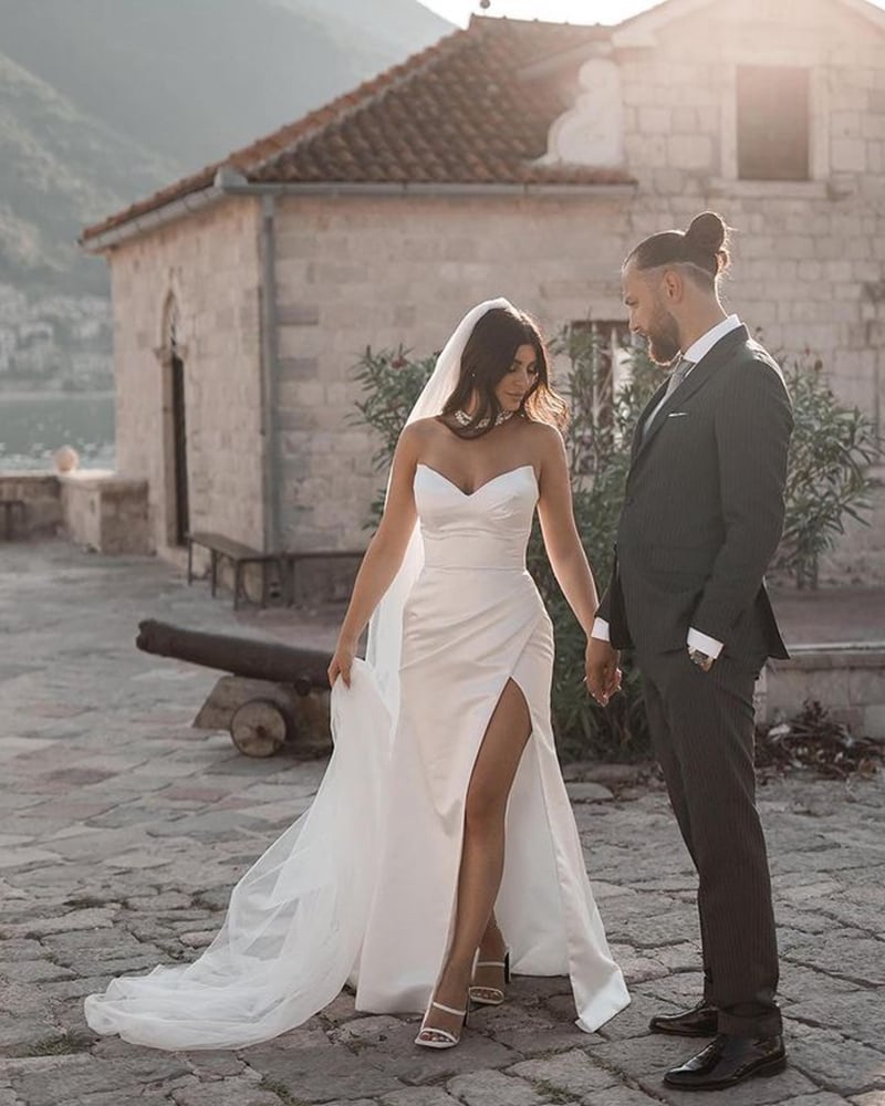 Simple Fashion Mermaid Wedding Dress Sleeveless Sweetheart Slit Sweep Train Bridal Gowns