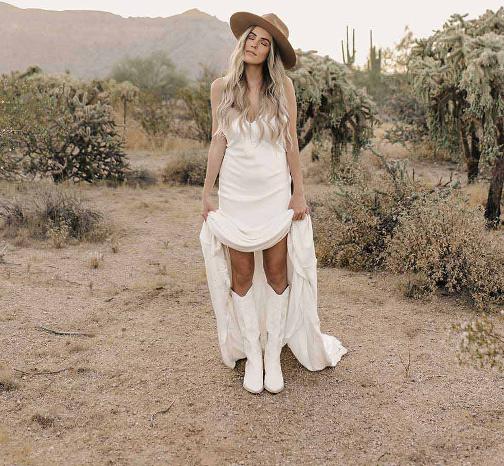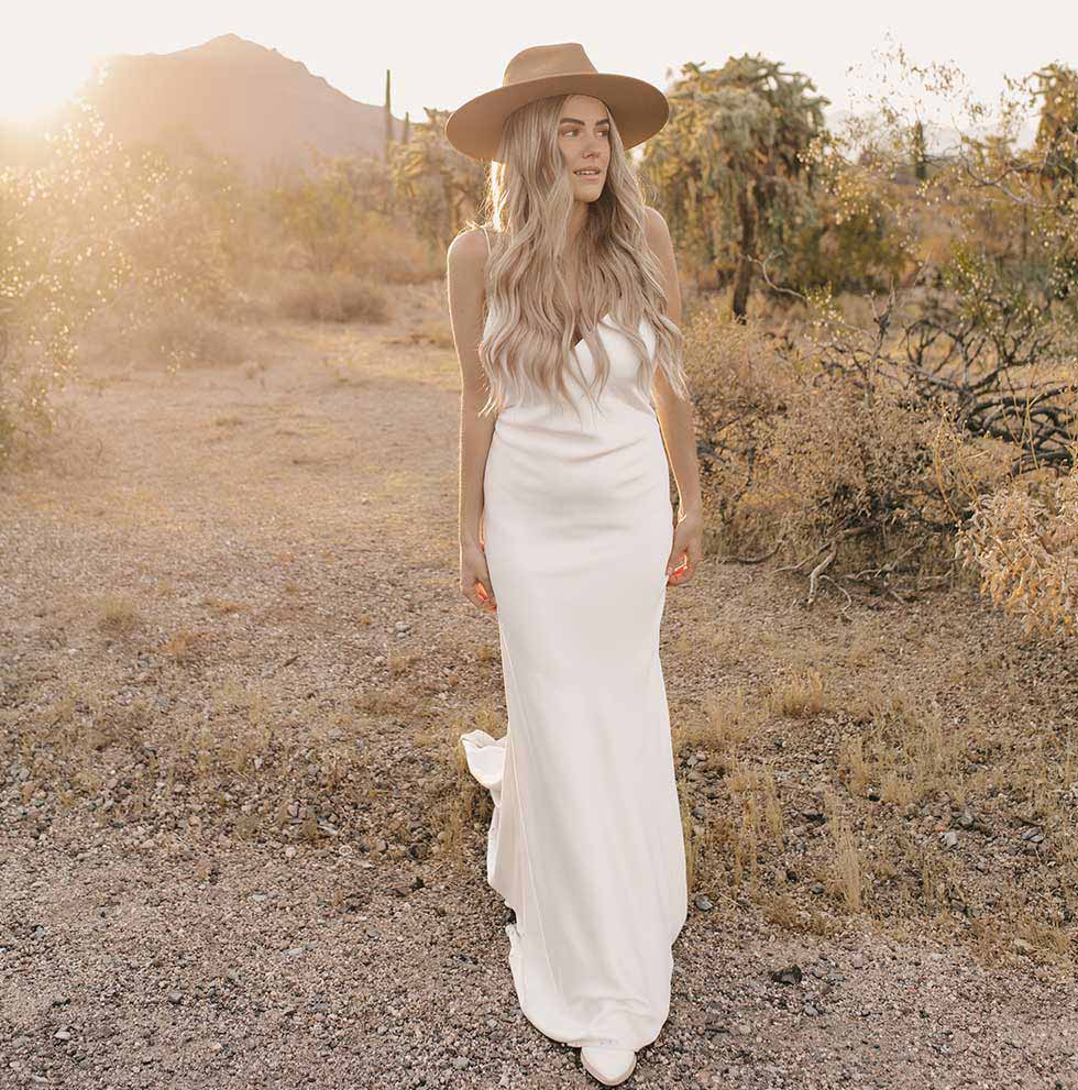 Spaghetti Straps Beach Satin Sleeveless V Neckline Boho Low Back Wedding Dress