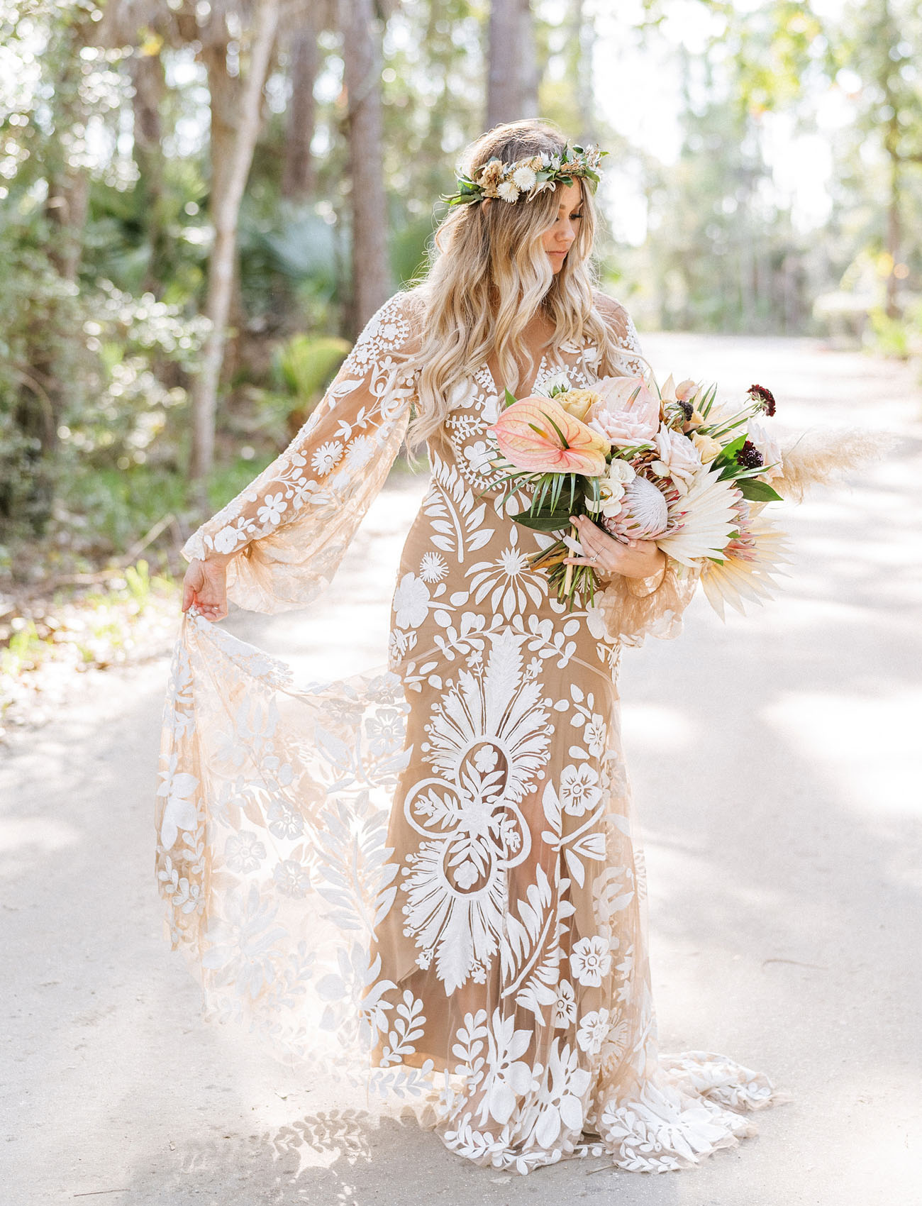 Boho Outdoor Destination V Neck Wedding Dress Two Pieces Slip Lace Robe Long Sleeves Illusion Backless Elopement Bridal Gowns