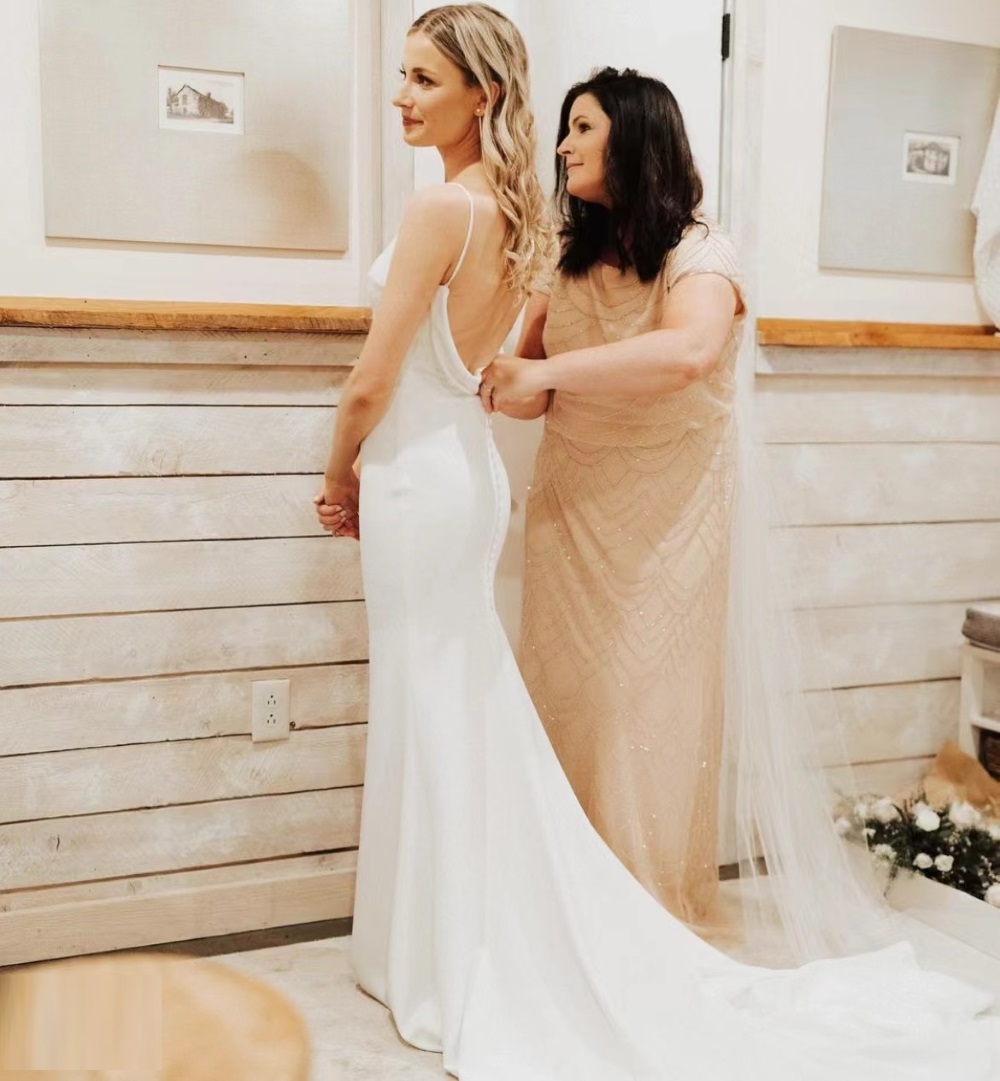 Spaghetti Straps Beach Wedding Dress Sheath V-Neck Cowl Backless Satin Custom Made Simple Bride Gown