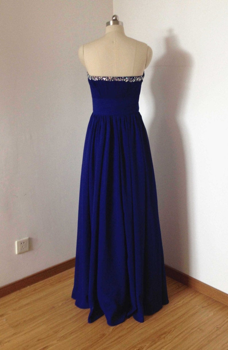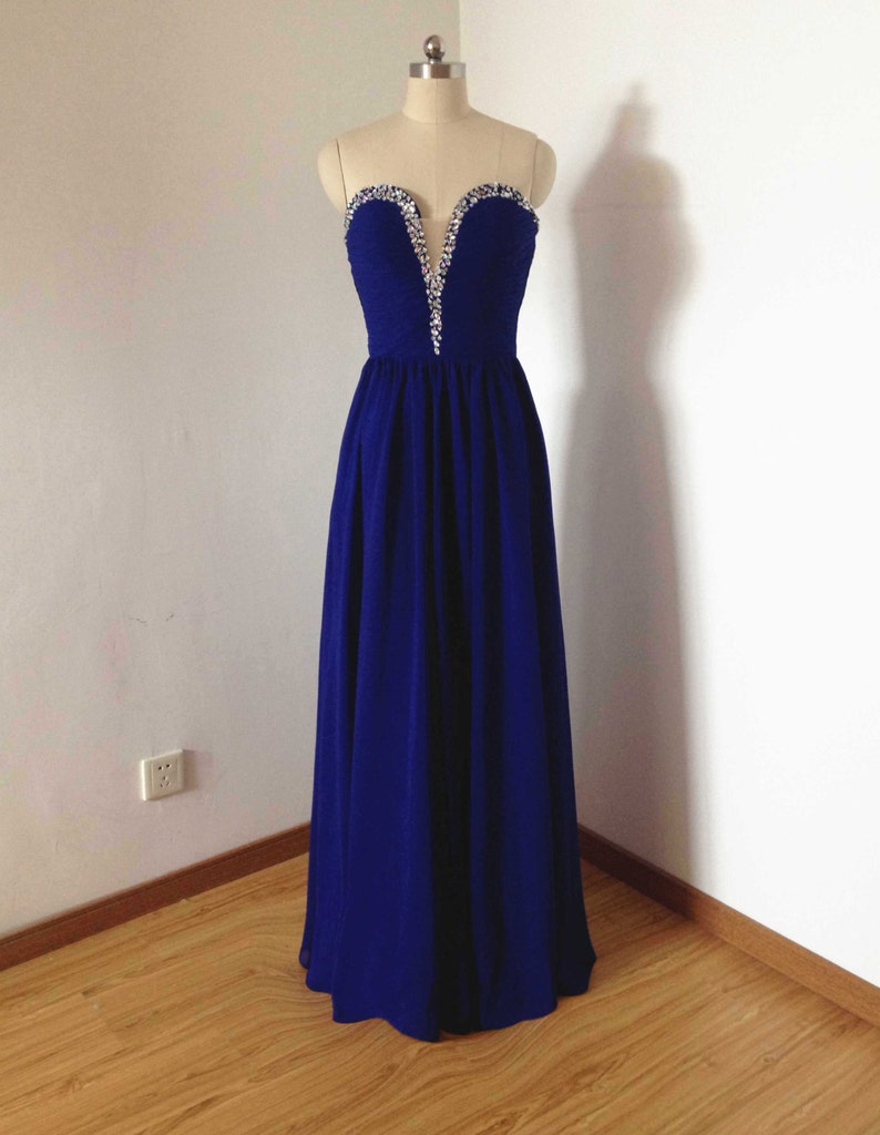 Beaded Sexy V-Neck Royal Blue Chiffon Long Prom Dress