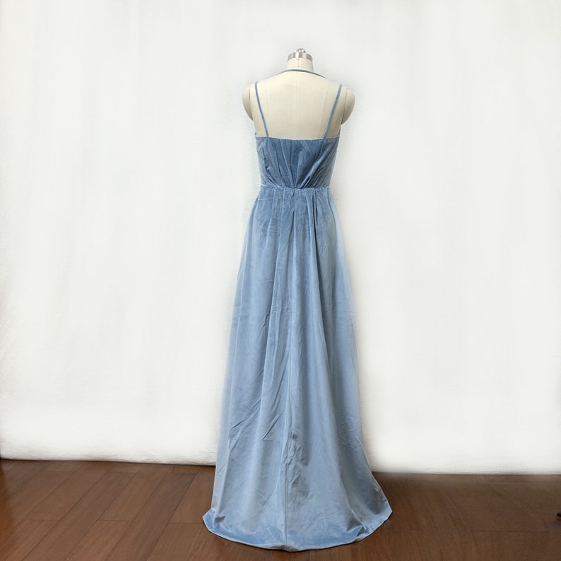 Dusty Blue Velvet Long Bridesmaid Dress with Slit