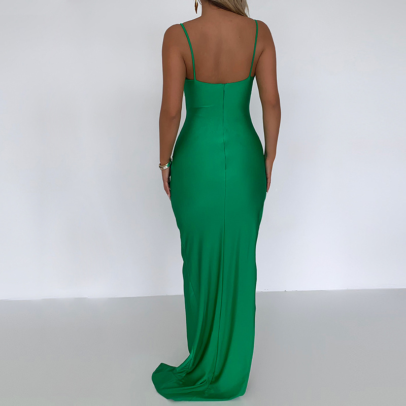 Elegant Women Dresses Sleeveless Party Club Evening Bodycon Green Split Long Dress