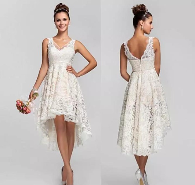 Simple Short Lace Wedding Dresses With V Neck Backless A Line High Low Hot custom Made Charming Beach Garden Bridal Gowns
