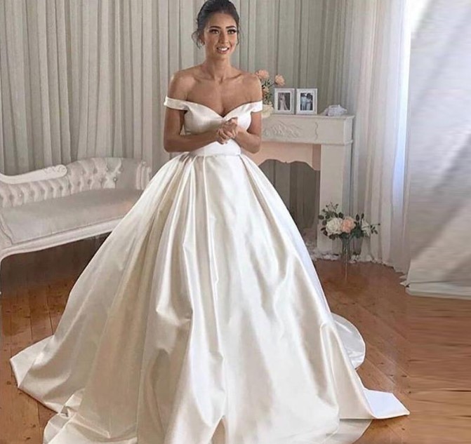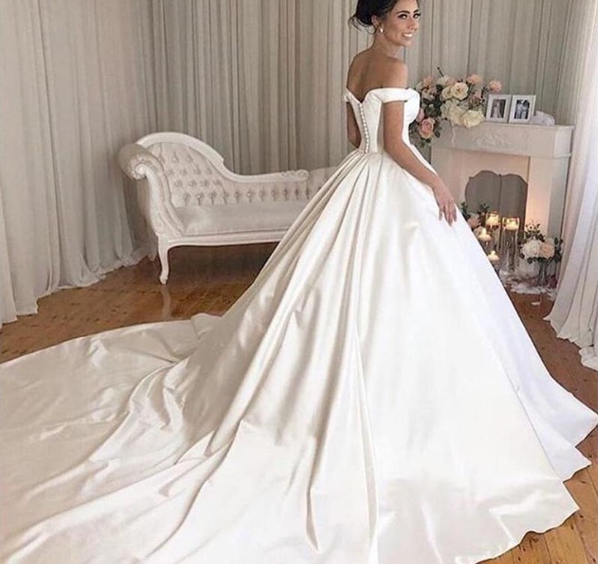Simple Cheap Wedding Dresses Off The Shoulder A-Line Bride Dress With Court Train Wedding Gowns